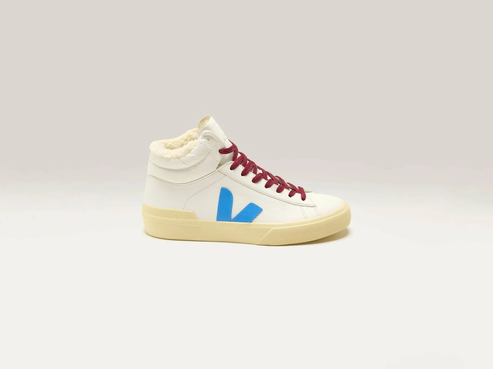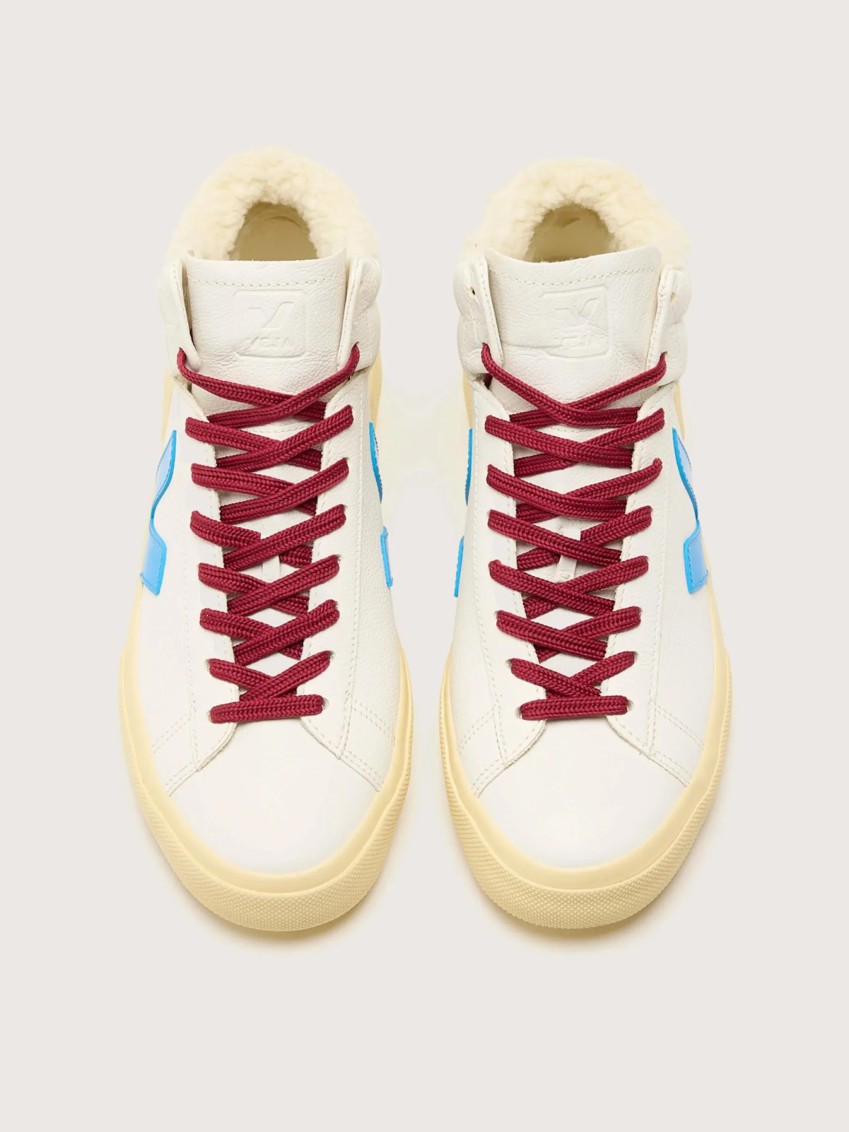 De Veja Minotaur Winter sneakers hebben een voering van textiel en een bovenwerk van chroomvrij leer dat wordt geaccentueerd door dieprode veters.