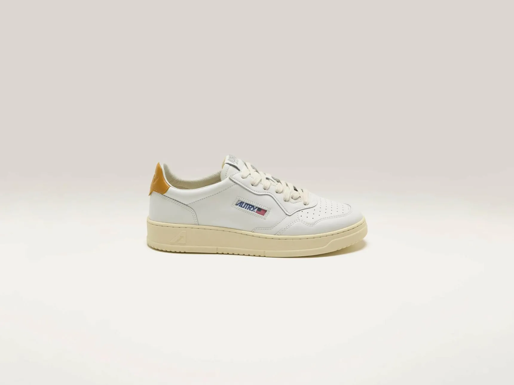 De Autry Medalist Low lifestyle sneakers hebben een sportief silhouet in wit leder met een gouden lederen hiellipje.