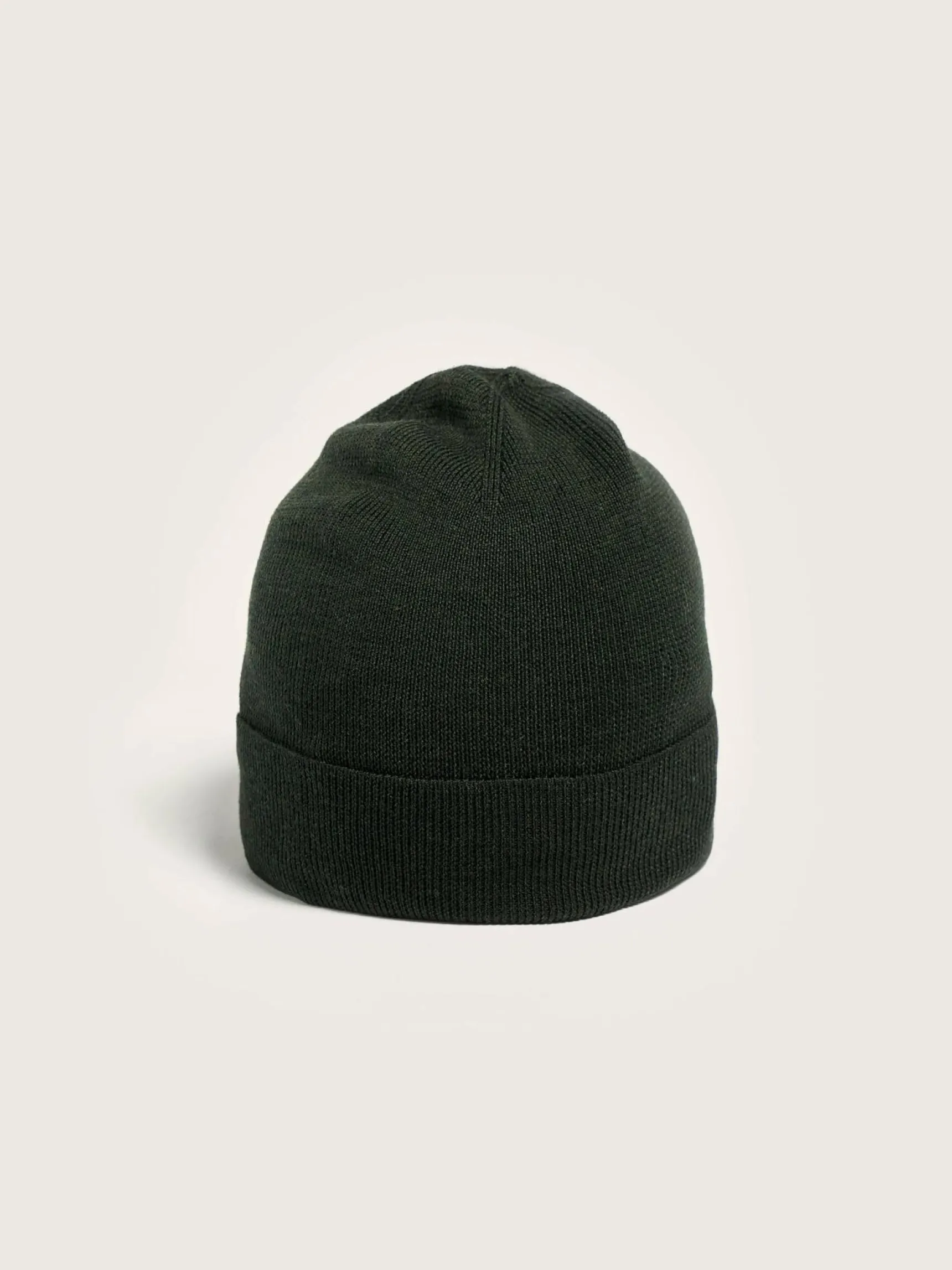 Klassieke geribbelde beanie van bosgroene, superfijne merinowol.
