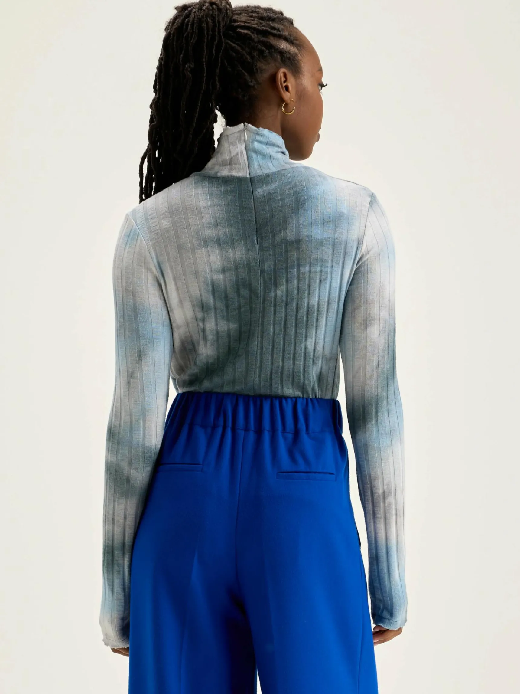 Aansluitend, ribgebreid T-shirt met opstaande kraag en tie-dye-effect.