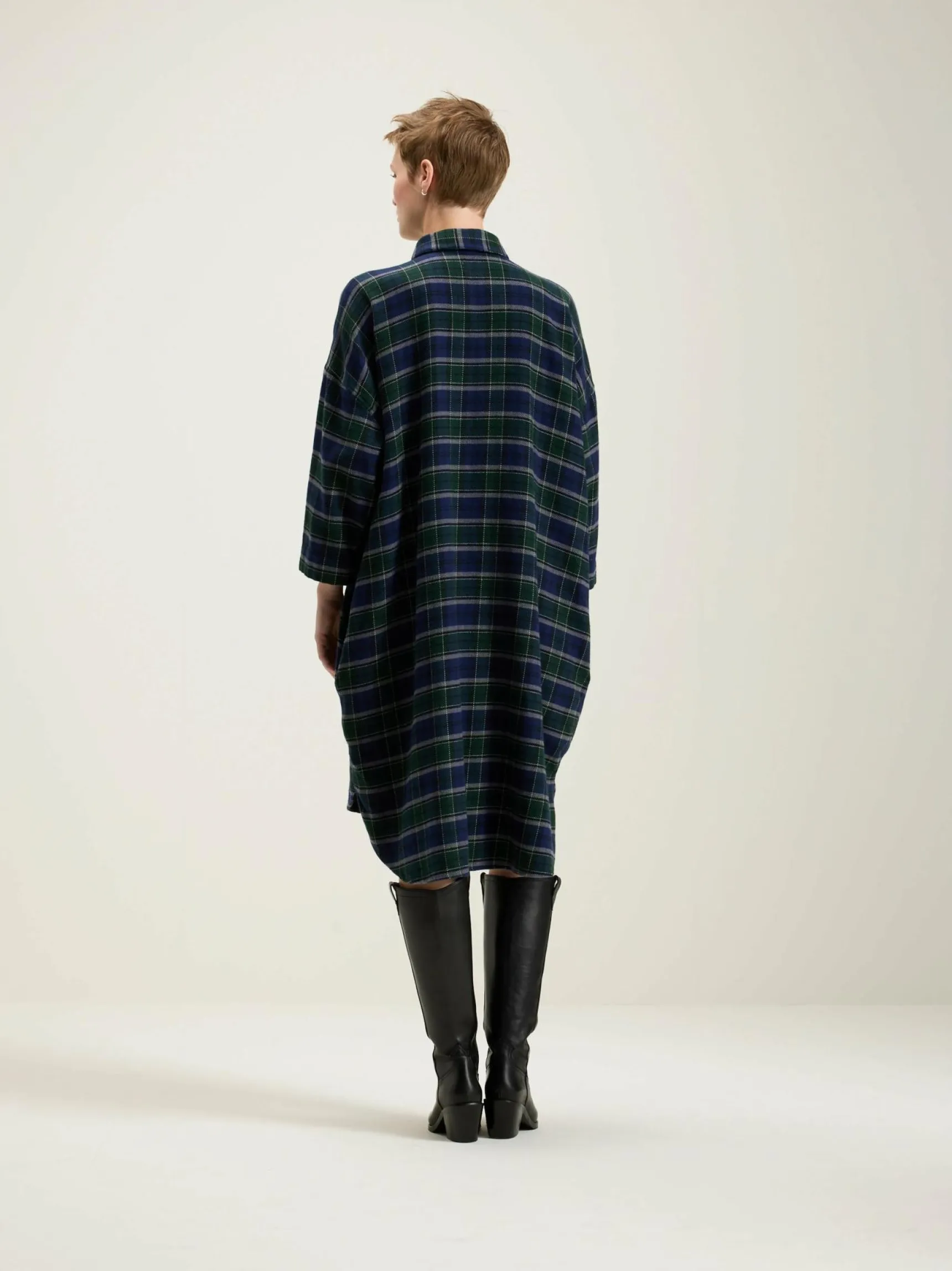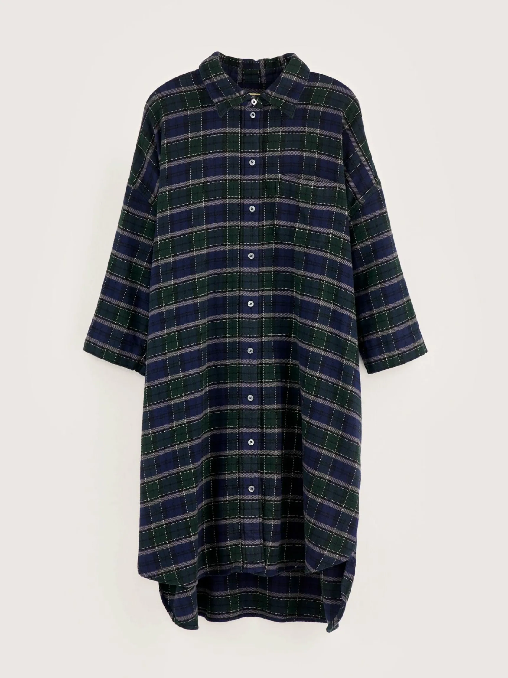 Oversizede hemdjurk van geborsteld katoen, met groene en marineblauwe ruiten