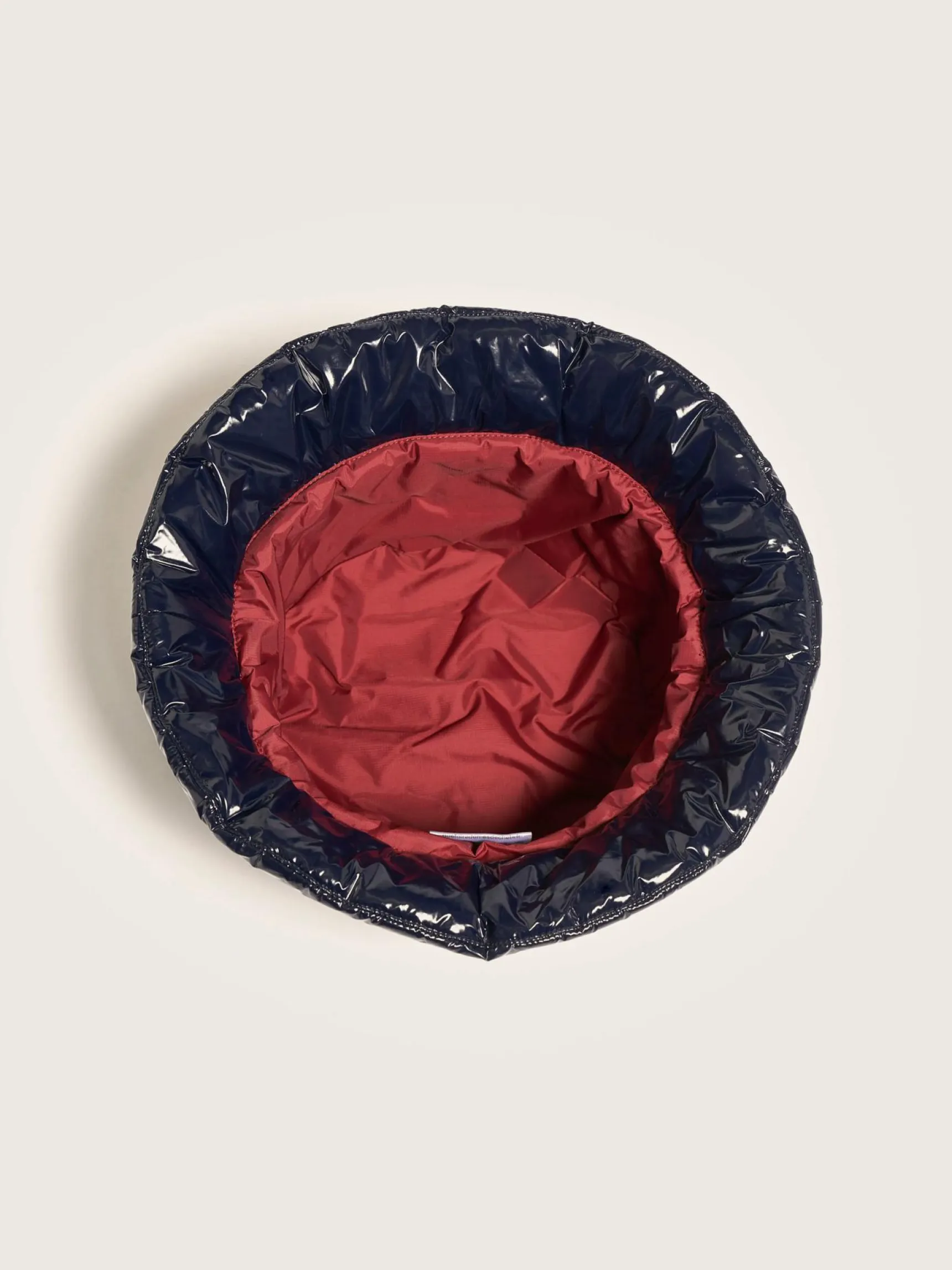 Licht gewatteerde, marineblauwe bucket hat.