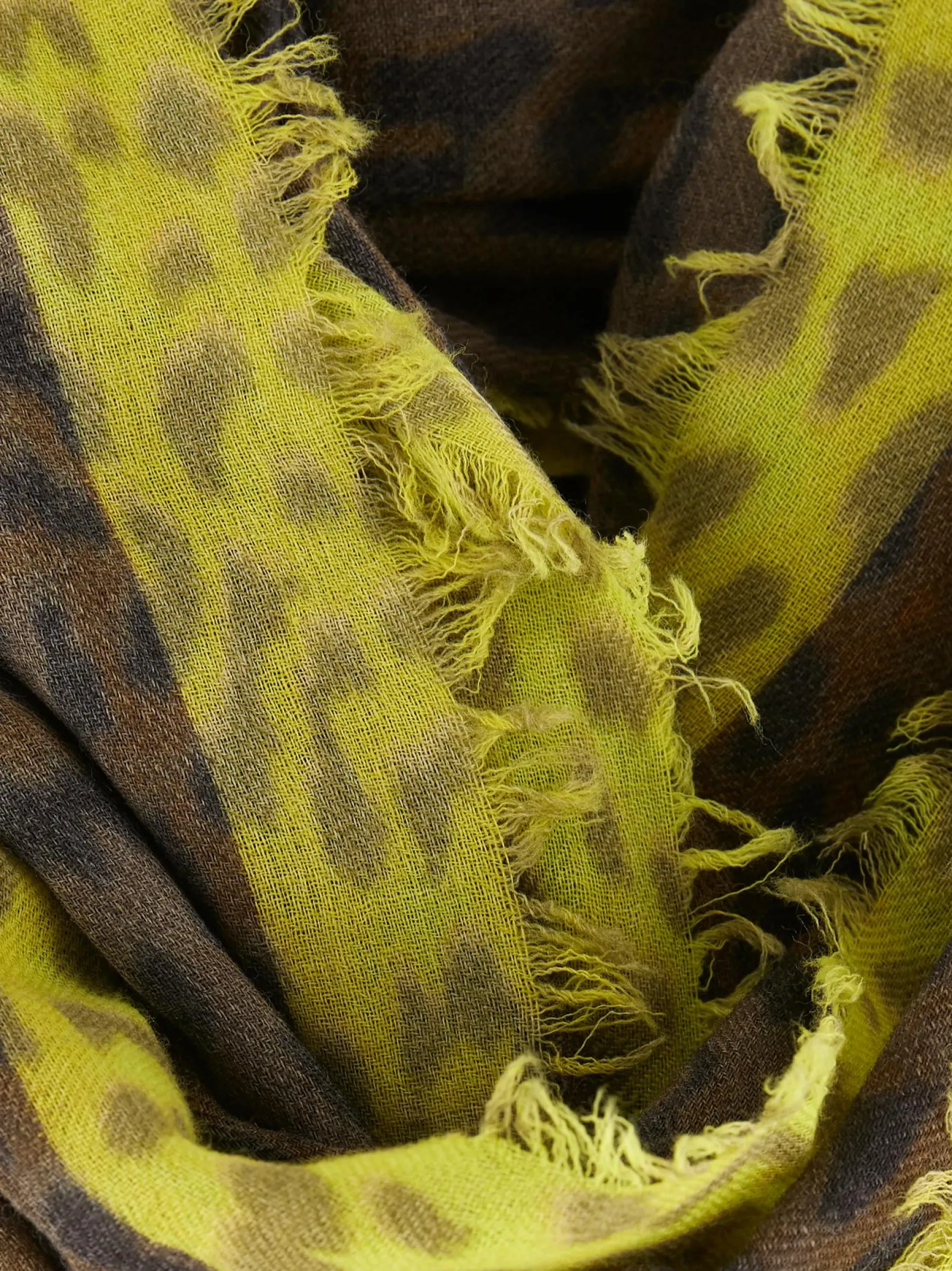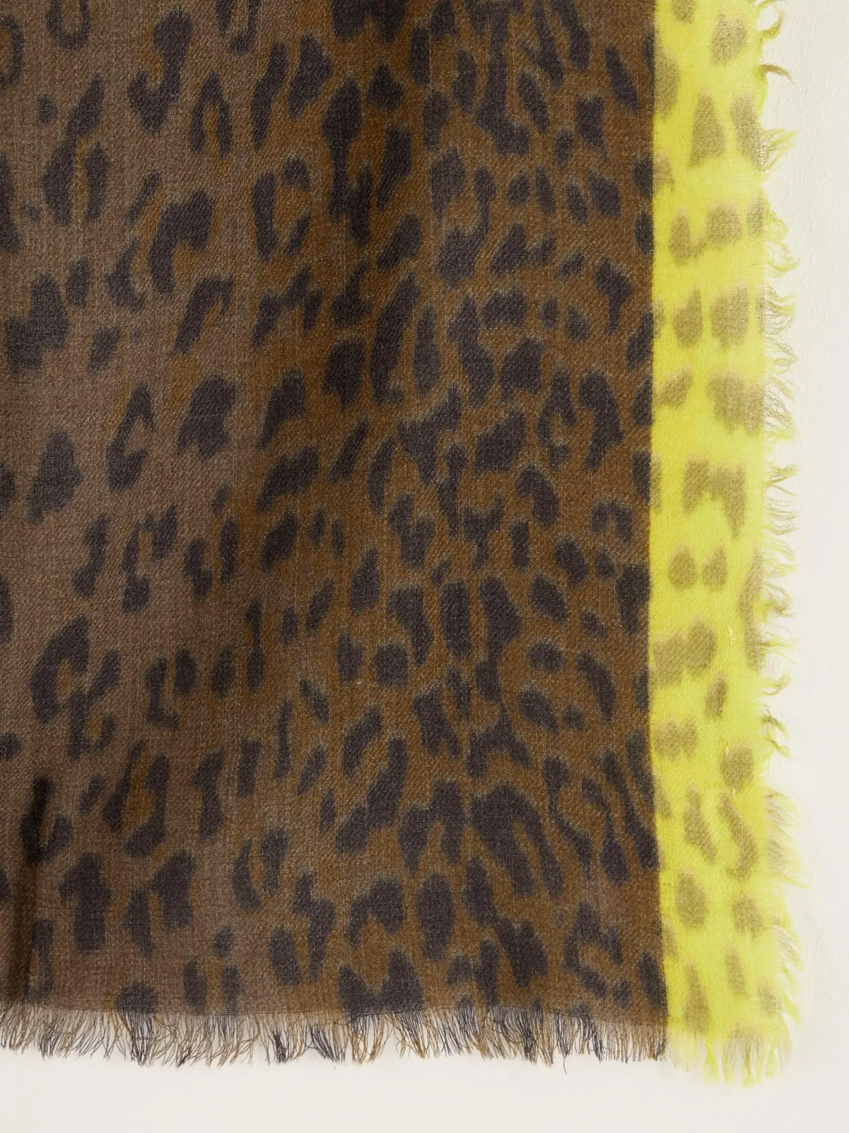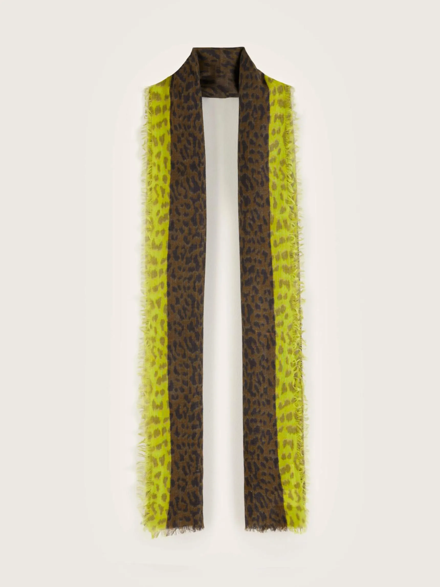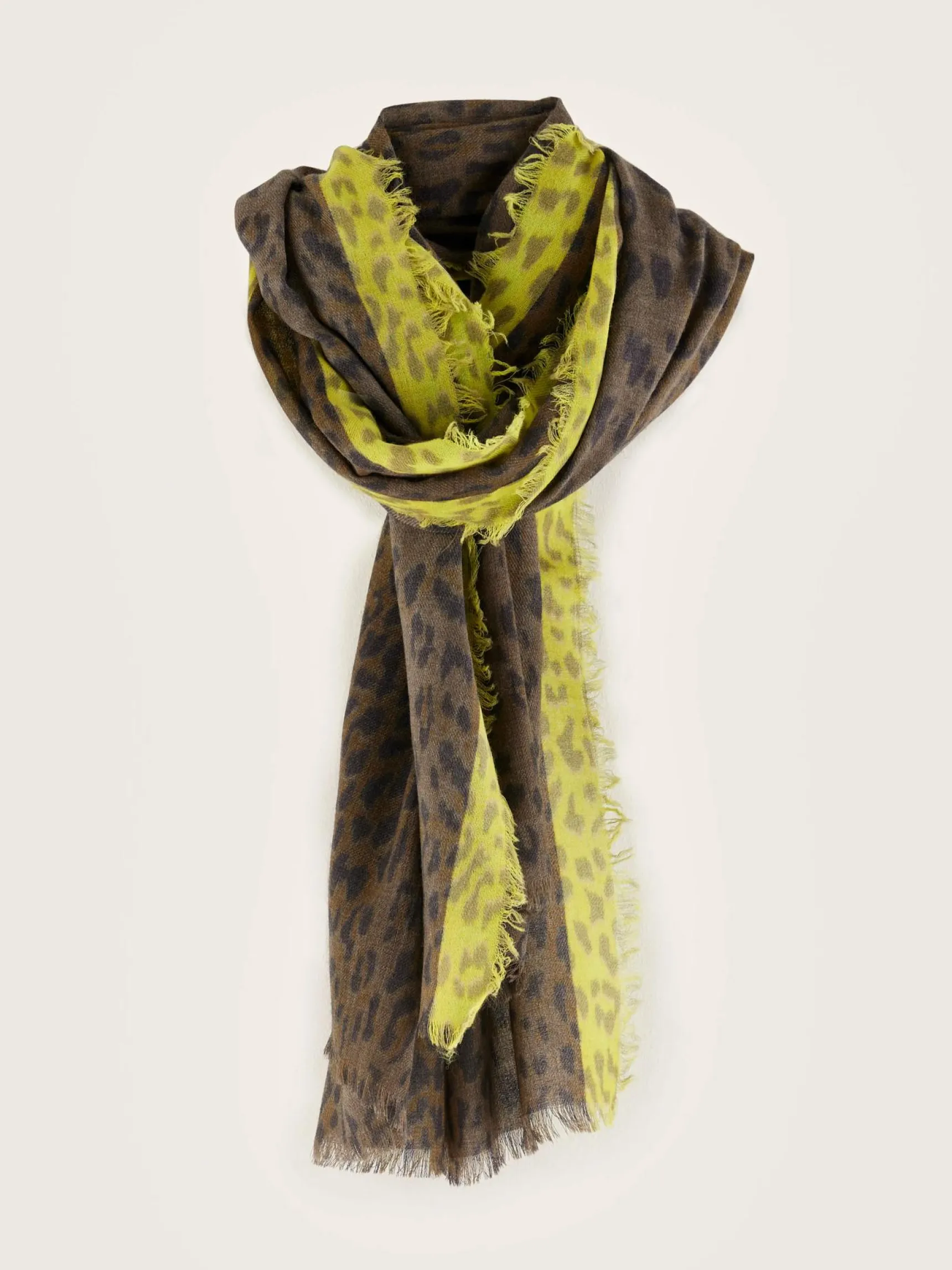 Lange geweven wollen sjaal met luipaardprint.