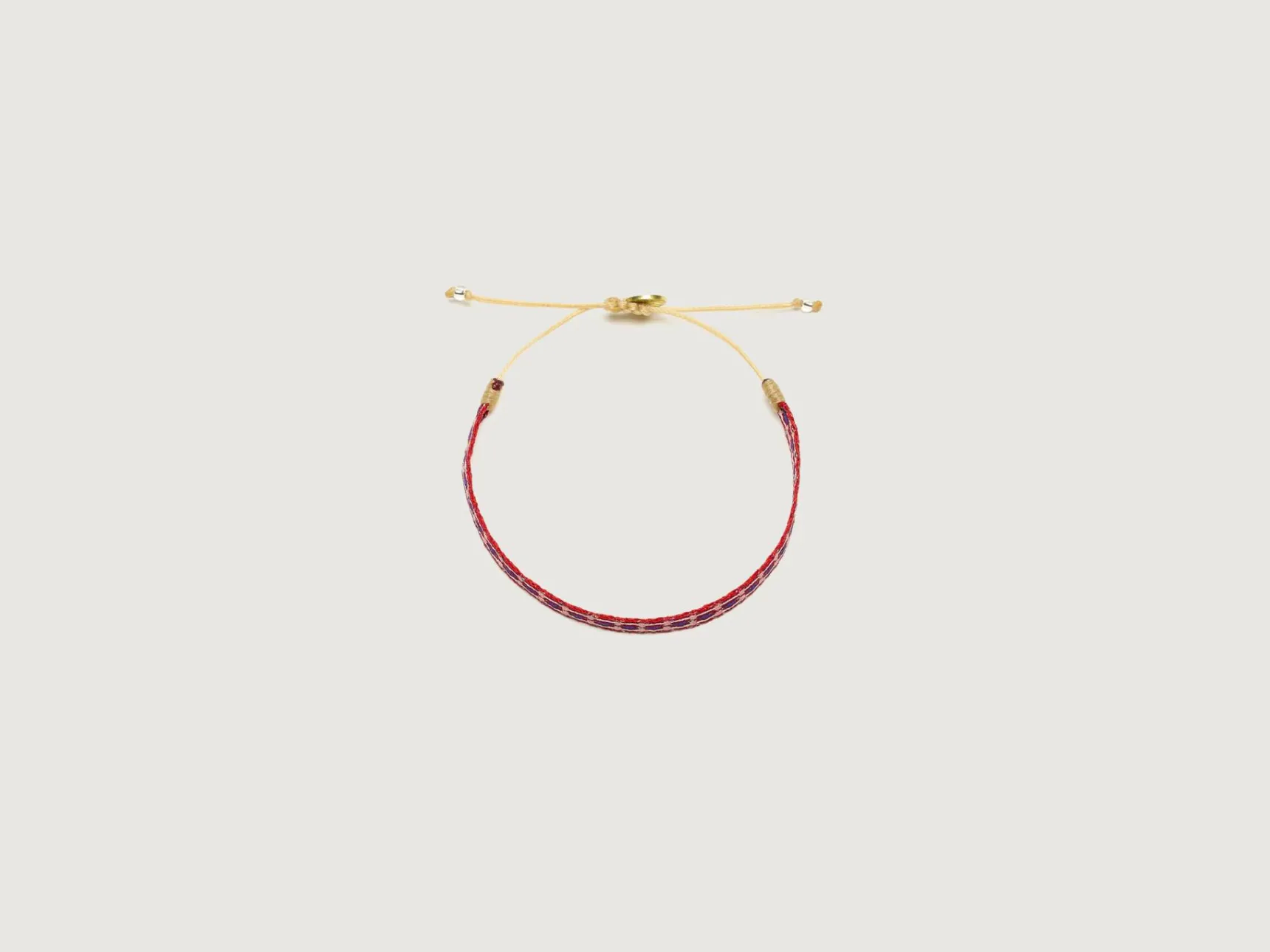 De handgeweven Guanabana Argantina 120 armband is gemaakt van 120 acryl draden en heeft een verstelbare opening.