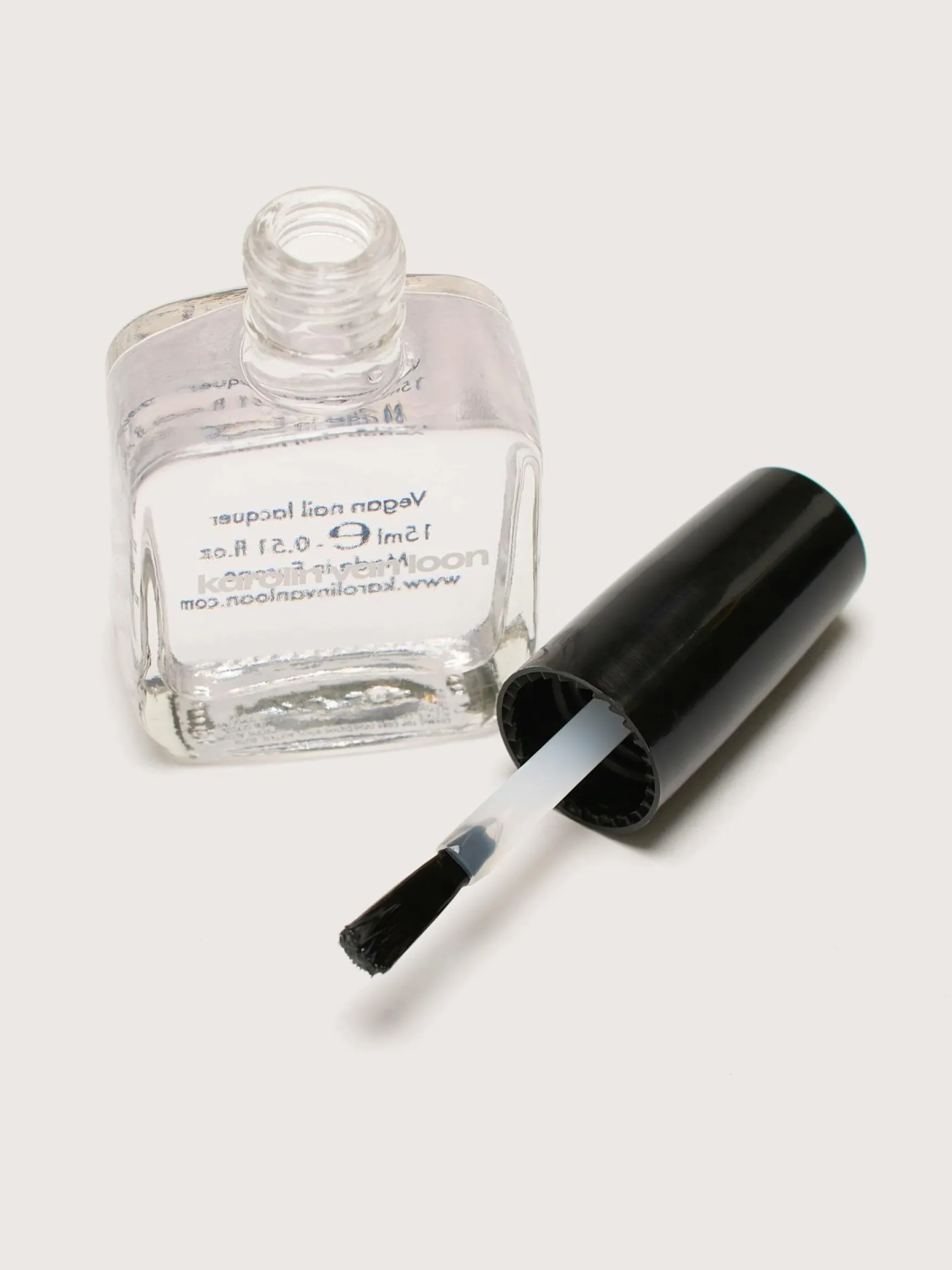 De veganistische en milieuvriendelijke Cosmic Top Coat van Karolin Van Loon beschermt, verlengt en droogt snel je nagellak.