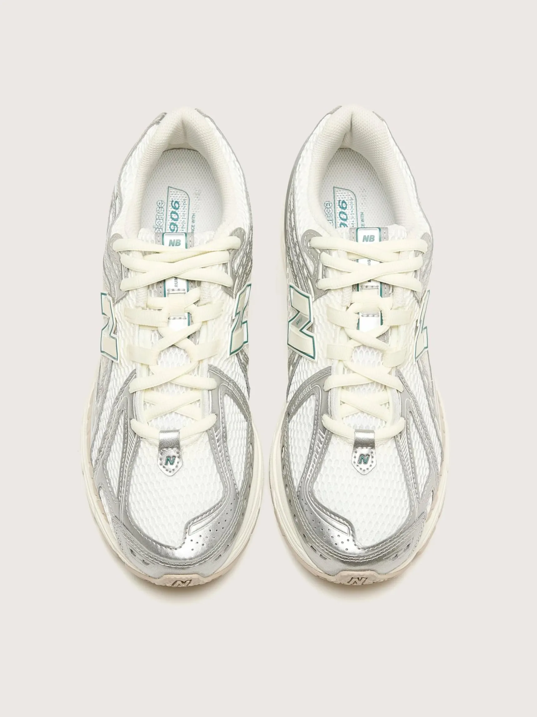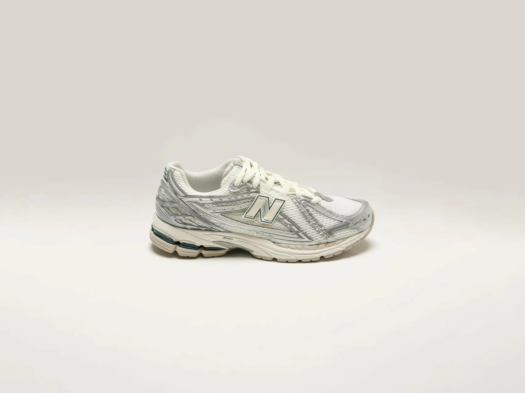 De New Balance 1906R hardloopschoenen hebben een bovenwerk van mesh met synthetische overlays en een dempende ABZORB middenzool en hiel.